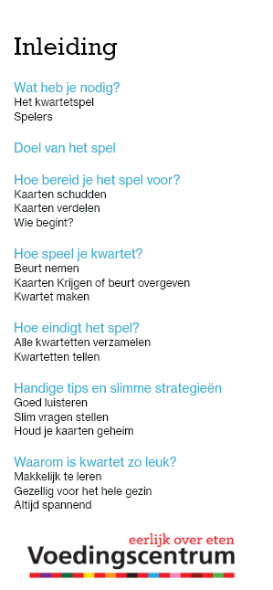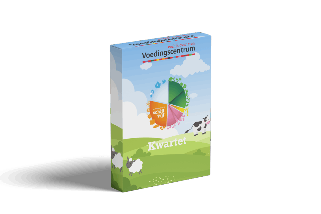 Het voedingscentrum denkt aan een kaartspel waarin alle vijf de onderdelen (van de schijf van vijf) spelenderwijs met de kinderen behandeld worden.